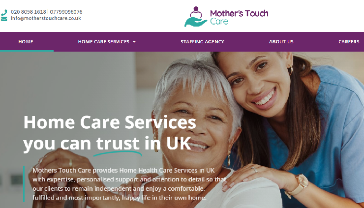 Developed a compassionate, professional website for Mother's Touch Care using WordPress. Showcased senior and patient care services in the UK, focusing on personalized home care and family values. Enhanced layout and experience with custom HTML, CSS, and JavaScript for smooth navigation and trust visuals.