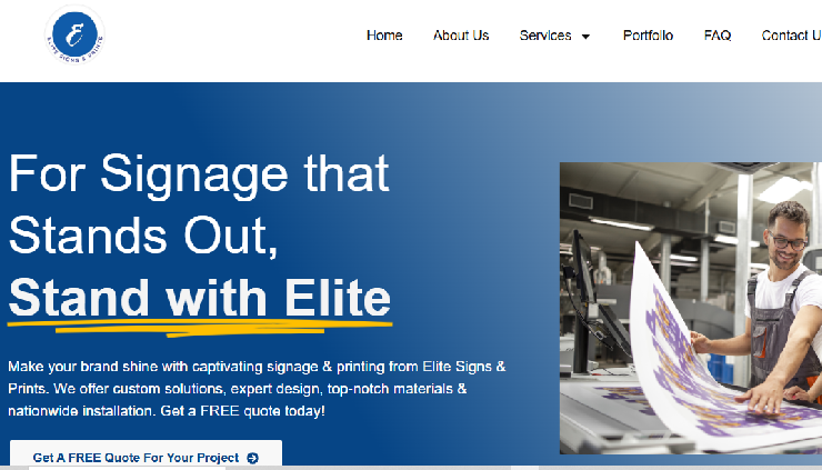 Elitesignsandprints showcases a professional signage and printing service with a focus on strong brand presence. The site highlights the company’s evolution, mission, and offerings through clean design and structured content. Built to ensure smooth user experience and easy navigation across devices