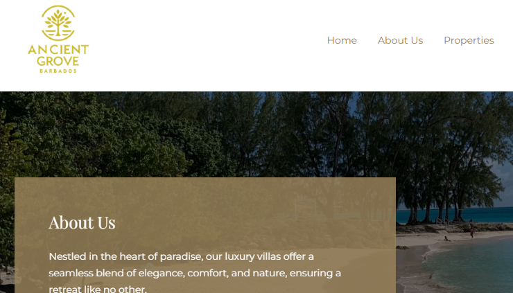 Designed and developed a luxury villa website for Ancient Grove Barbados using WordPress. The site showcases high-end properties, guest testimonials, and a custom booking form, all wrapped in a clean, responsive layout that reflects the brand’s elegance and tropical charm.